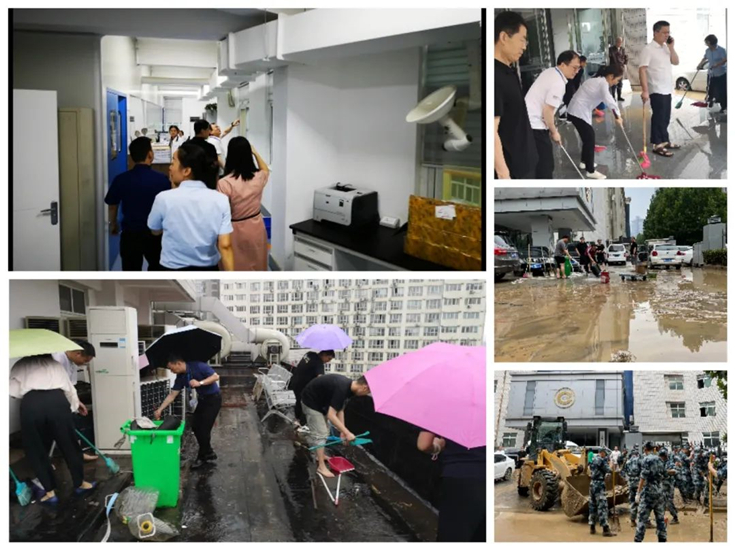 在暴雨来临之时,中检中原公司积极组织防汛自救工作,公司班子第一时间带领大家清扫楼顶垃圾,检查电路、转移检测设备、排除安全隐患,安置转移人员、安排人员值守,最大限度防止人身伤害,降低公司财产损失,在此次雨水灾害中,公司所有员工人身安全都得到了有效保障,并及时开展自救和灾后的清淤、防疫工作。