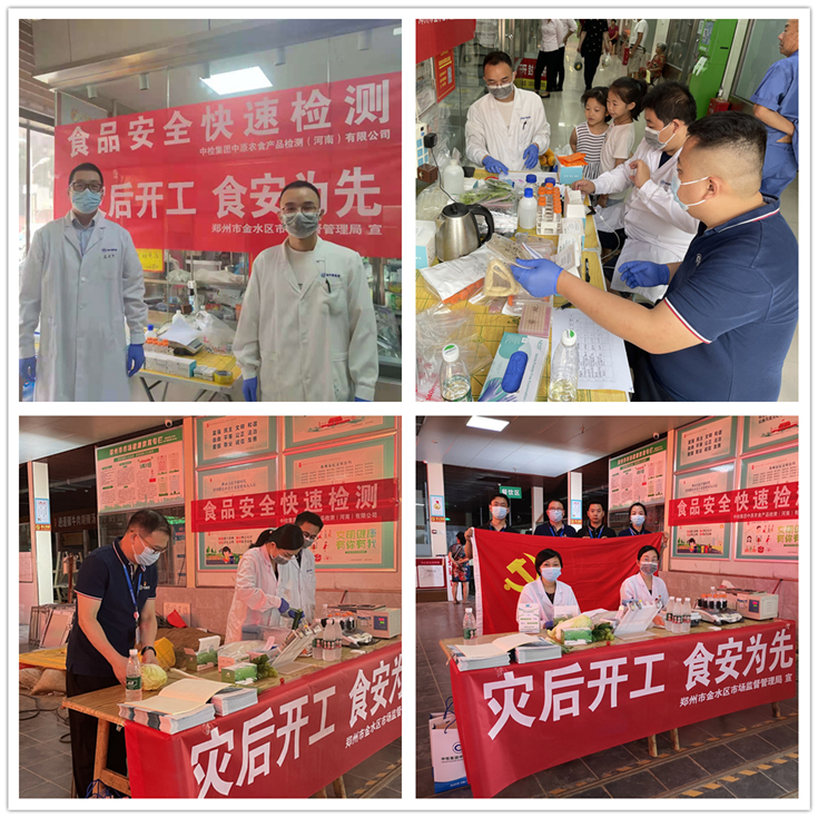 暴雨洪水过后,食品被污染风险增大,加之灾情期间,气温高、湿度大,细菌繁殖迅速,食物容易腐烂,极易引发肠道不适、食物中毒等情况,食品安全牵动人心,为保证人民群众能够吃上安全、放心的食品,7月27日,公司与辖区食品监管部门一起,针对农贸市场内销售的蔬菜、水果、肉类、蛋品等类别食品开展免费食品安全检测活动。