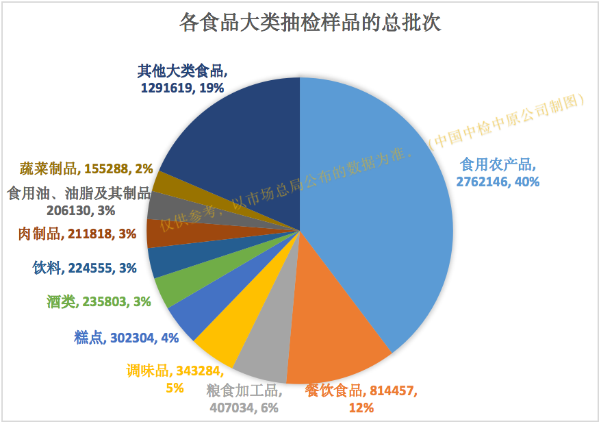 其中,食用农产品的抽检批次达到27万,占全年抽检总批次的40%;餐饮食品抽检批次次之,占全年抽检总批次的12%。