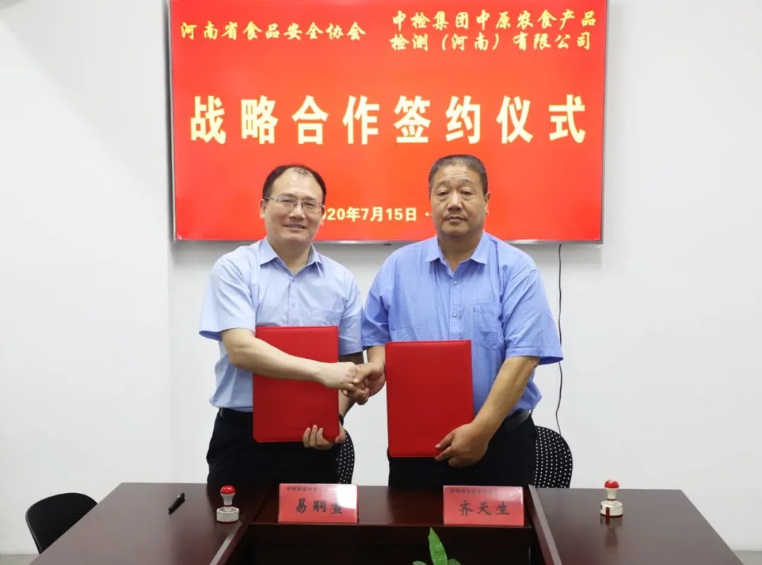 2020年7月15日,中检中原公司领导班子拜访河南省食品安全协会,双方在深入交流中原地区的食品安全形势、市场机遇以及各自的优势后经友好协商,结为战略合作单位。双方将在产品检测、标准制定、项目研发、公众宣传、培训与咨询等多领域开展深入合作。